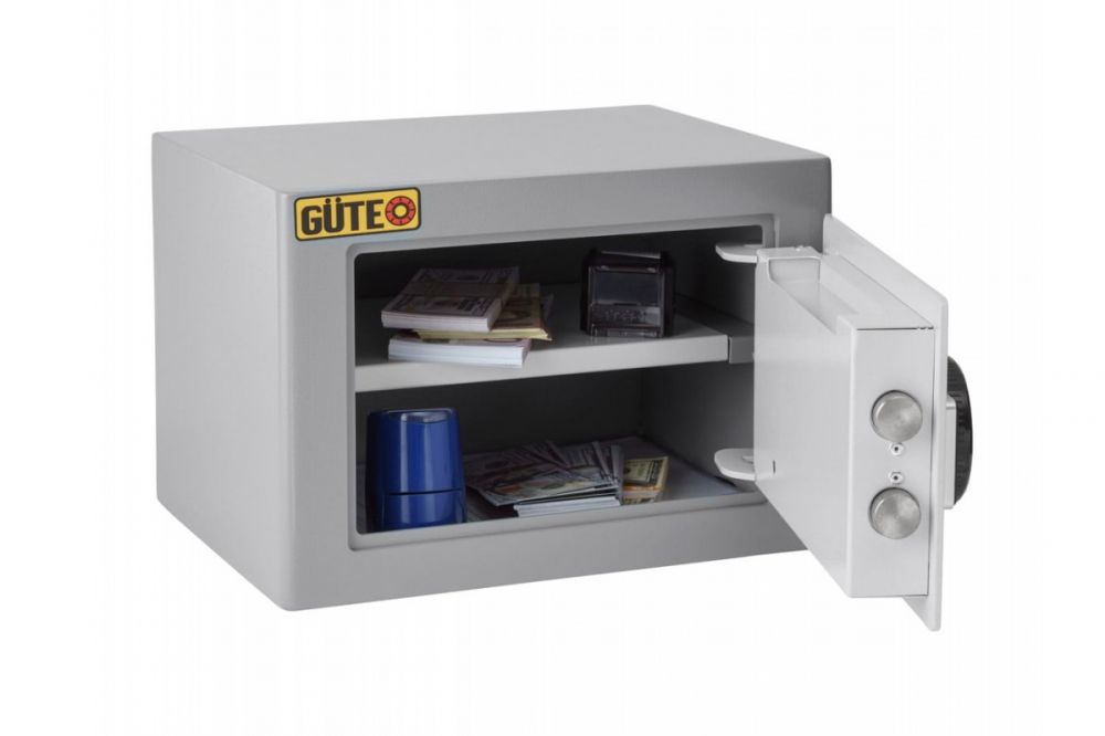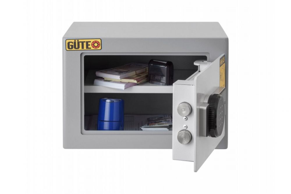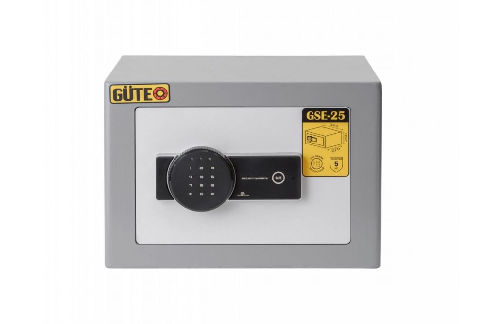 Меблевий сейф GUTE GSЕ-25 Найпопулярніший сейф формату А4 з електронним кодовим замком для зберігання цінних паперів, грошей, зброї. Завдяки своїм скромним габаритам має великий попит серед готелів. Основною відмінністю серії GSE від серії ЯМХ є товщина металу корпусу і якісний електронний замок зі звуковою сигналізацією (при 3-х кратному введенні невірного коду). Завдяки цим параметрам сейф GSE-25 має більшу надійність у повсякденному житті. Знімна полиця і одна невелика на двері зробить для Вас використання даної моделі дуже комфортним і практичним (ідеальне місце зберігання для ключів і дрібних коштовностей). /span> анкерними болтами до підлоги або стіни. Знімні двері спростять монтаж сейфа до підлоги або стіни (2 отвори на нижній стінці, 2 отвори на задній стінці).
