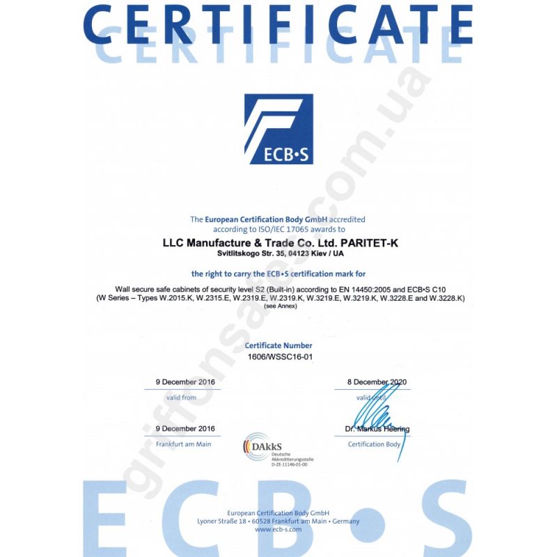 Вбудований сейф сертифікований і має сертифікат класу S2 за стандартом ДСТУ EN 14450.